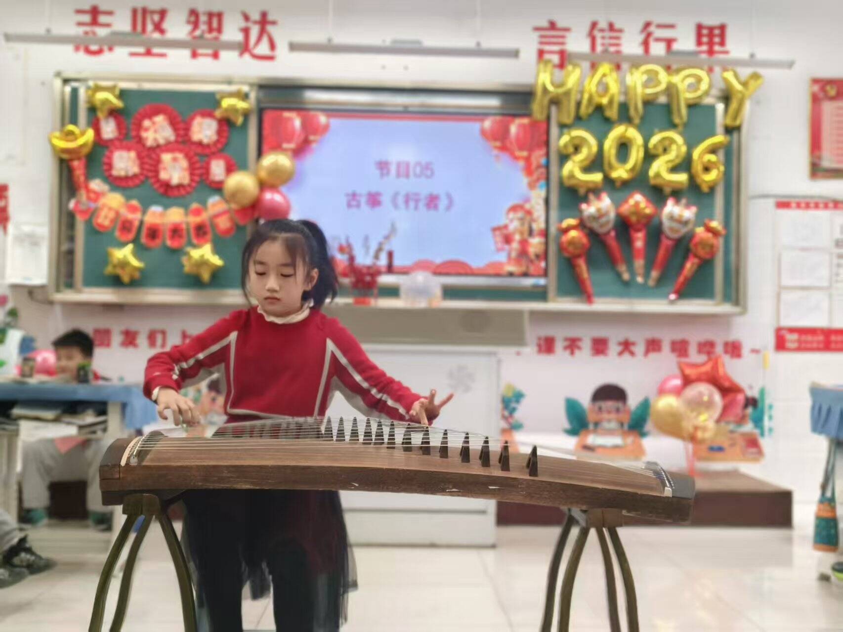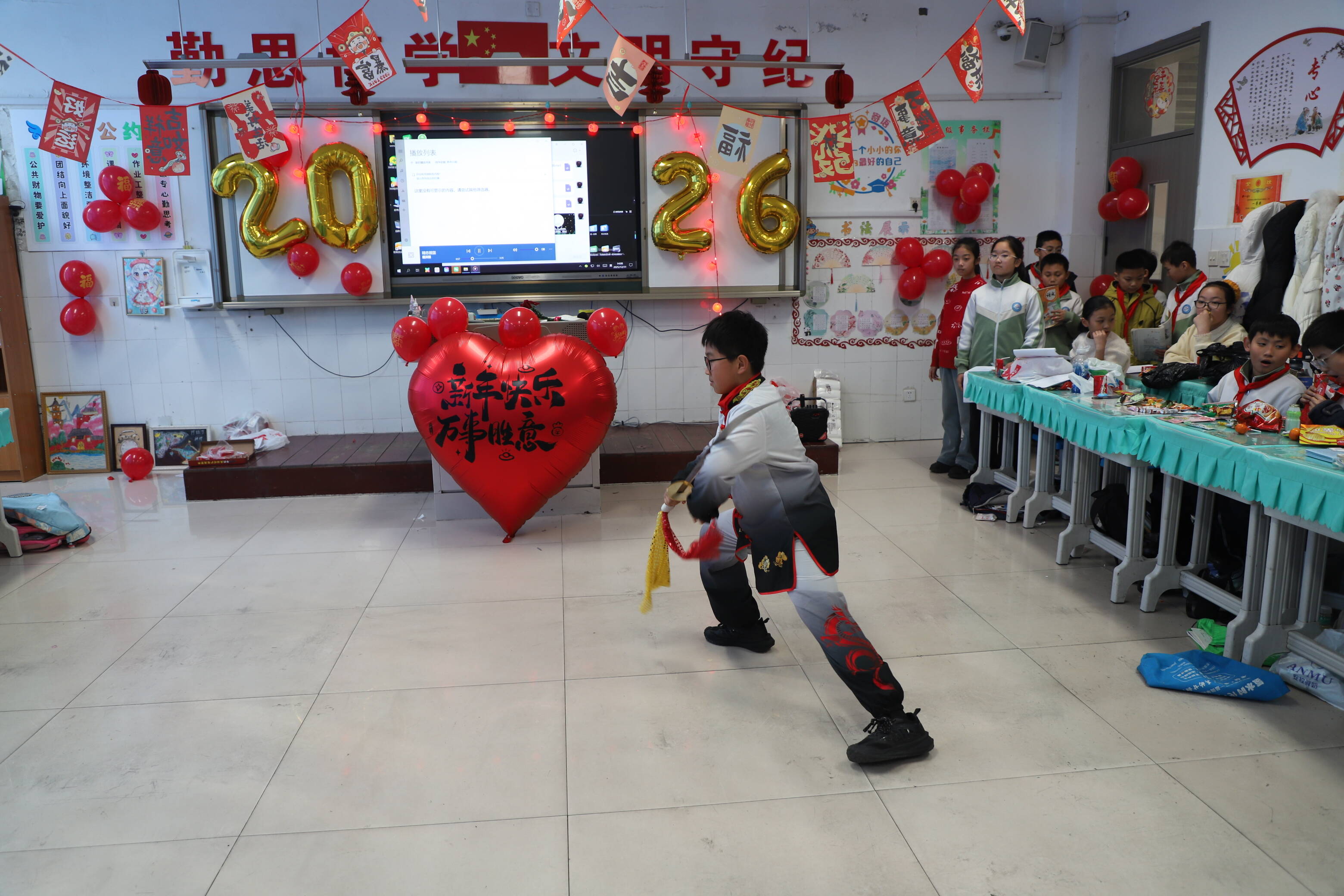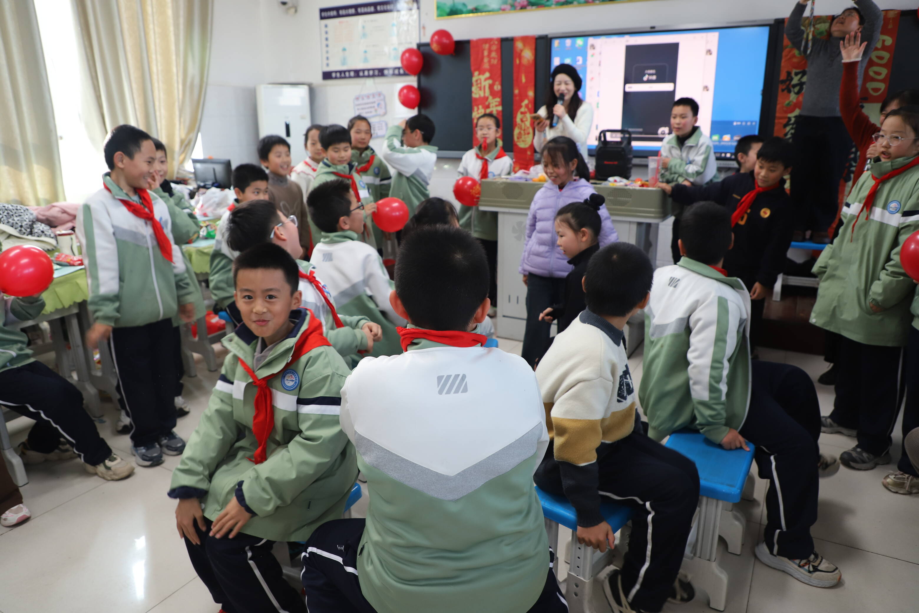 各班自主开展“庆元旦”主题联欢活动,在老师们的精心策划与同学们的积极参与下,一间间教室摇身变成创意十足的欢乐天地。同学们踊跃登台、各展所长,悦耳的歌声、灵动的舞蹈、悠扬的乐器演奏轮番上演,尽显少年风采;教室里还穿插了抢椅子、你画我猜等趣味十足的互动游戏,师生同乐、欢声不断,掌声、笑声、喝彩声此起彼伏,回荡在校园的每个角落,自信的笑容在孩子们脸上尽情绽放,暖意与欢乐浸润着每个人的心田。