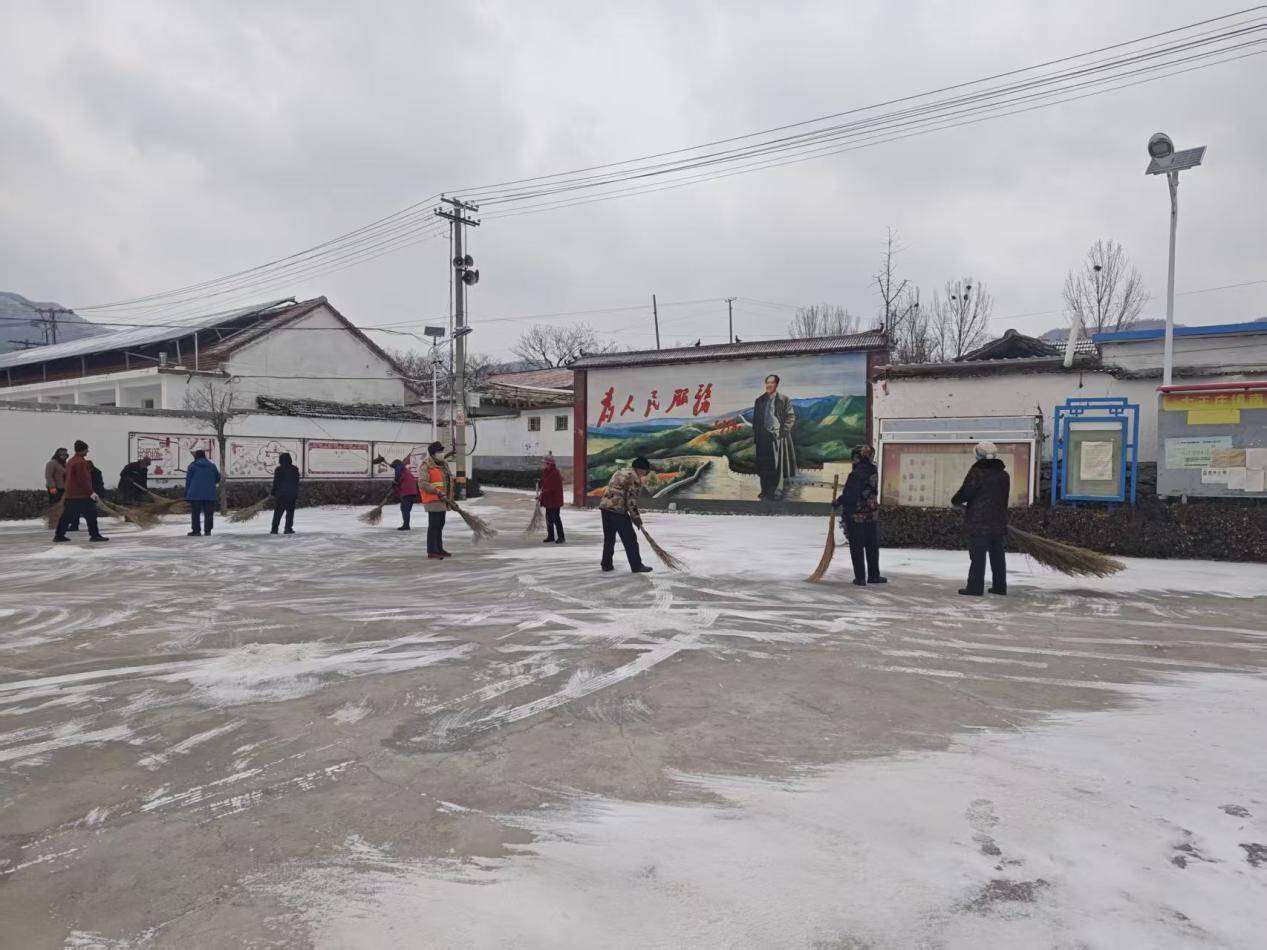 村“两委”成员率先垂范,带领党员干部冲锋在前,一个个忙碌的身影成为雪地里的亮眼风景。大家手持铁锹、扫帚、推雪板,分工协作铲冰除雪,重点清理主干道、独居老人院落等关键区域。老党员主动请缨,返乡青年踊跃参与,村民们自发带着工具加入队伍,形成“党员带头、群众跟上”的生动局面。
