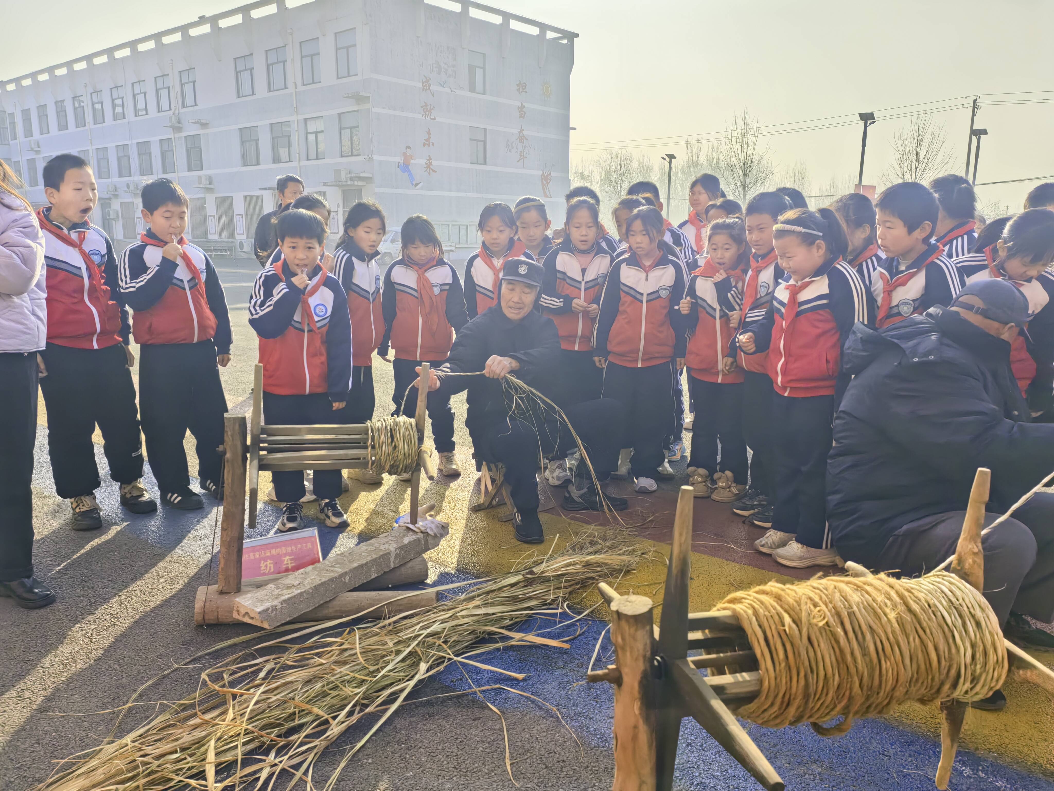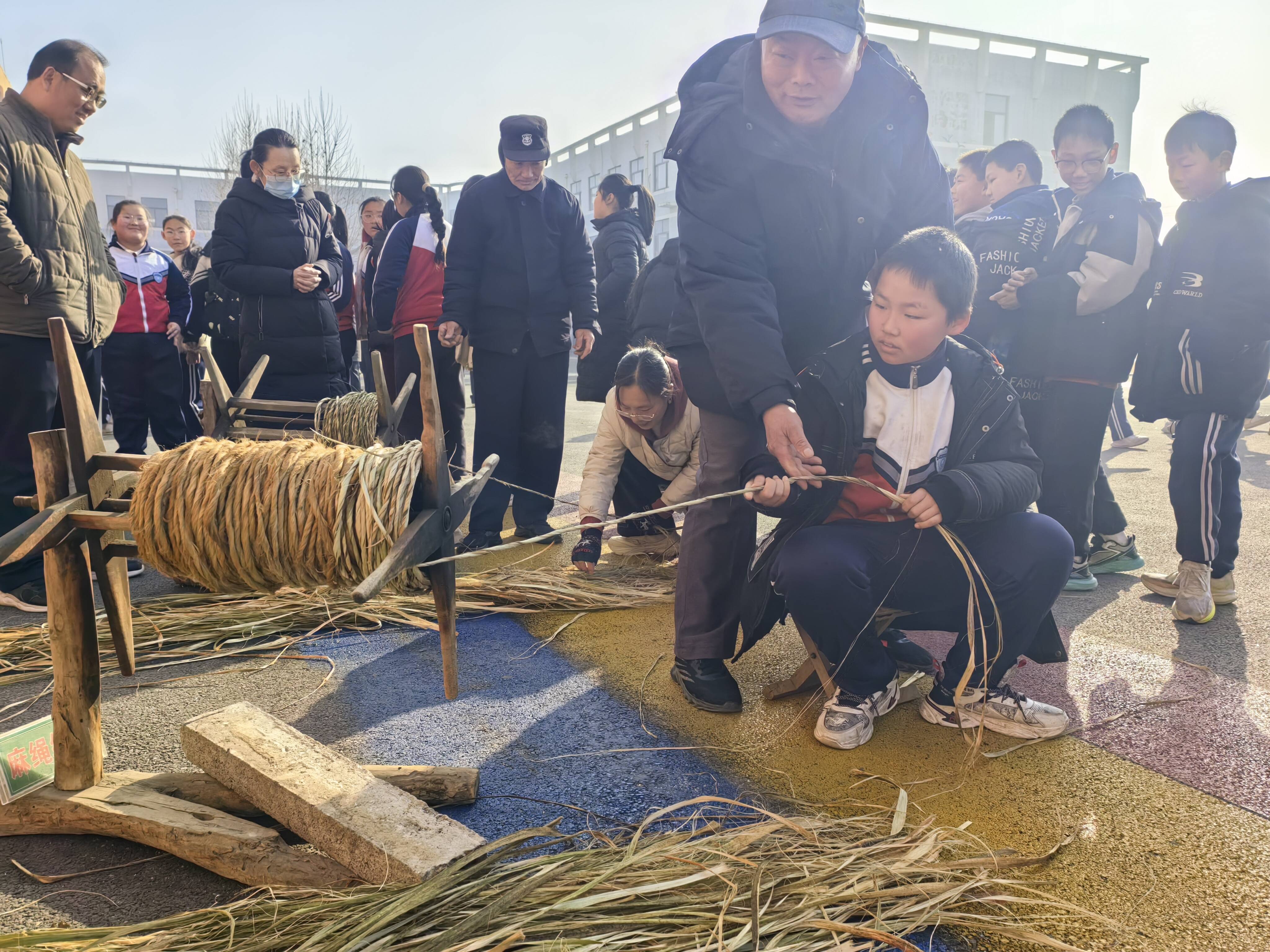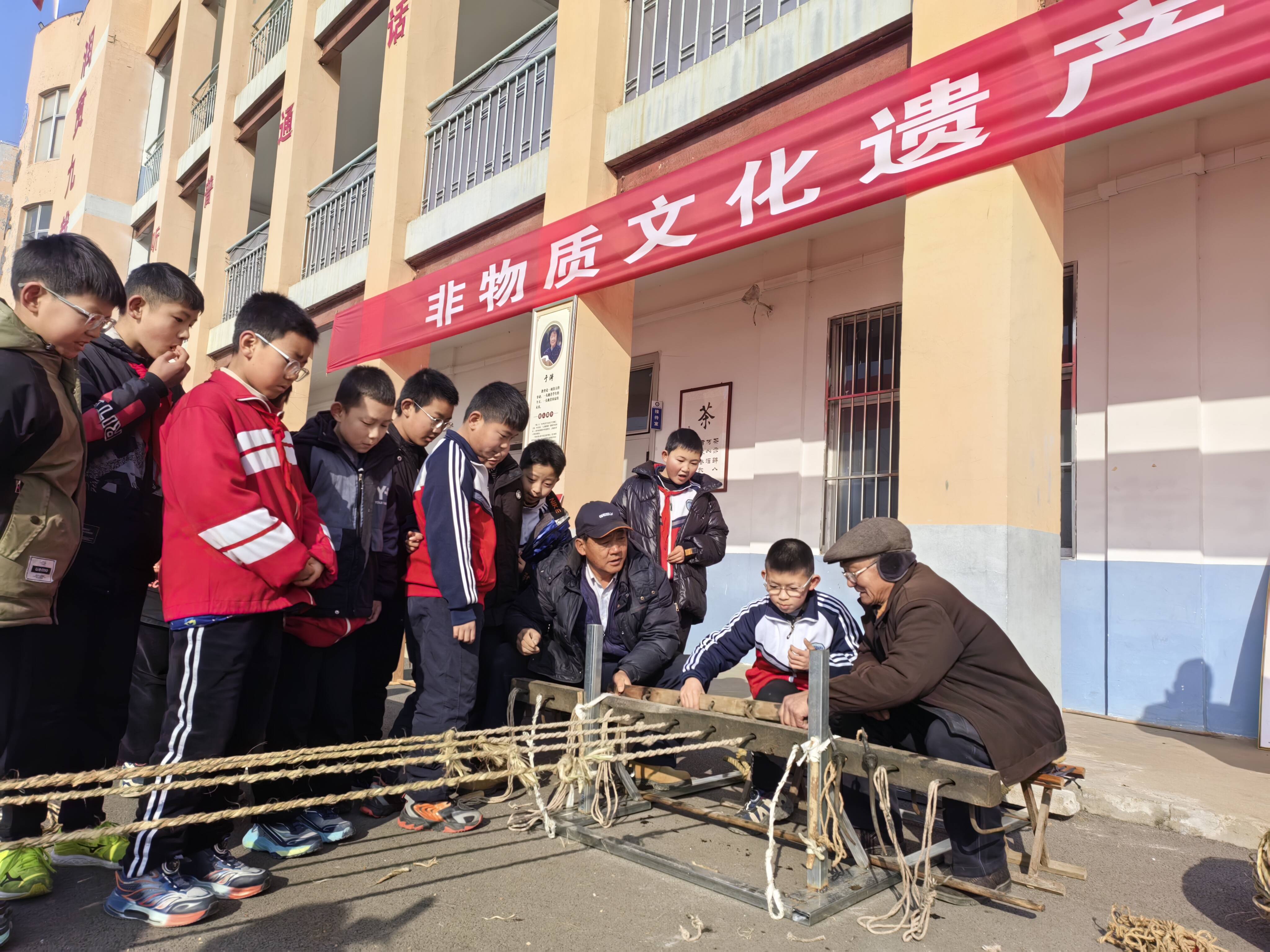 在非遗展示与体验区,15项极具杨庄本土特色的非遗项目集中亮相,涵盖传统民俗、传统技艺、传统美术、民间游艺等多个门类。小年糖瓜祭灶习俗历经两千余年传承,承载着百姓团圆美满、风调雨顺的美好祈愿;陈楼糖瓜制作技艺作为省级非遗项目,先后亮相央视《舌尖上的中国》、《探索·发现》等栏目,背后是家族世代坚守的匠心;春秋战国时期流传至今的高家店麻绳,以“拧成一股绳”的团结精神,教会同学们凝心聚力、互助共进;燕氏精锡镶嵌、梅氏烙画、王银匠银饰精巧细腻,展现出手工艺人炉火纯青的精湛技法;高家店木杆秤以杠杆原理为根基,彰显公平正义、天地良心的做人准则;筛面罗蕴含去粗取精、去伪存真的人生哲理;杨庄辣椒酱、李氏正骨膏药、小磨香油等传统技艺,则以原生态的制作方式,展现乡土生活的烟火气息与实用智慧。