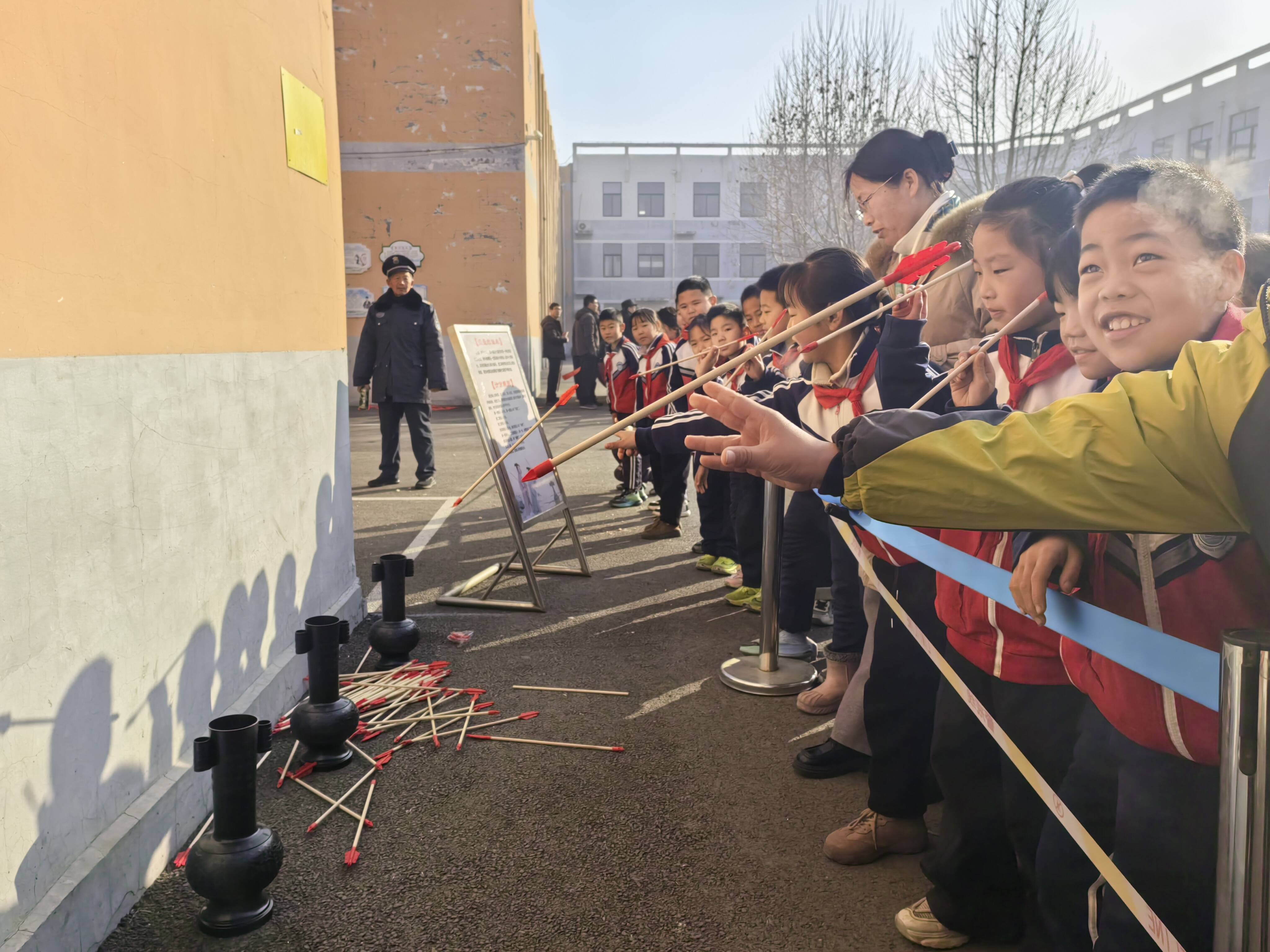 非物质文化遗产负责人现场分享非遗传承故事,讲述各项技艺的历史渊源与文化内涵,勉励同学们珍惜学习机会,感受传统技艺的独特魅力,接过文化传承的接力棒。非遗传承人现场展示制作工序,从化锡锻造、熬糖作画,到搓麻制绳、制成锡壶,一招一式尽显功底。同学们有序驻足观赏,认真聆听讲解员的细致解说,近距离触摸古老技艺的温度,了解每一项非遗背后的历史故事、制作流程与文化寓意。在互动体验环节,大家亲手参与糖画制作、投壶游艺、爆玉米花等趣味项目,在动手实践中感受非遗的乐趣与魅力,现场气氛热烈而有序。非物质文化遗产是中华民族的根与魂,是杨庄地域文化的珍贵名片,陈楼糖瓜、高家店麻绳、木杆秤、燕氏锡雕等一批省、市、区级非遗项目,承载着百年技艺与乡土记忆,与学校的教育理念高度契合,是开展德育、美育、劳动教育的鲜活教材。