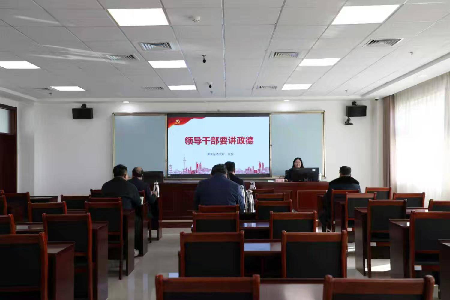 参观结束后,村“两委”成员与驻村第一书记来到教室听取莱芜区委党校张俊老师的党课。张老师以《领导干部要讲政德》为题,从领导干部要讲政德的内涵、重要意义以及实践路径三个方面,为我们上了一堂深刻而生动的党课,进一步深化了我们对新时代政德建设的认识,为我们加强党性修养锻炼过硬作风,指明了方向,提供了遵循。
