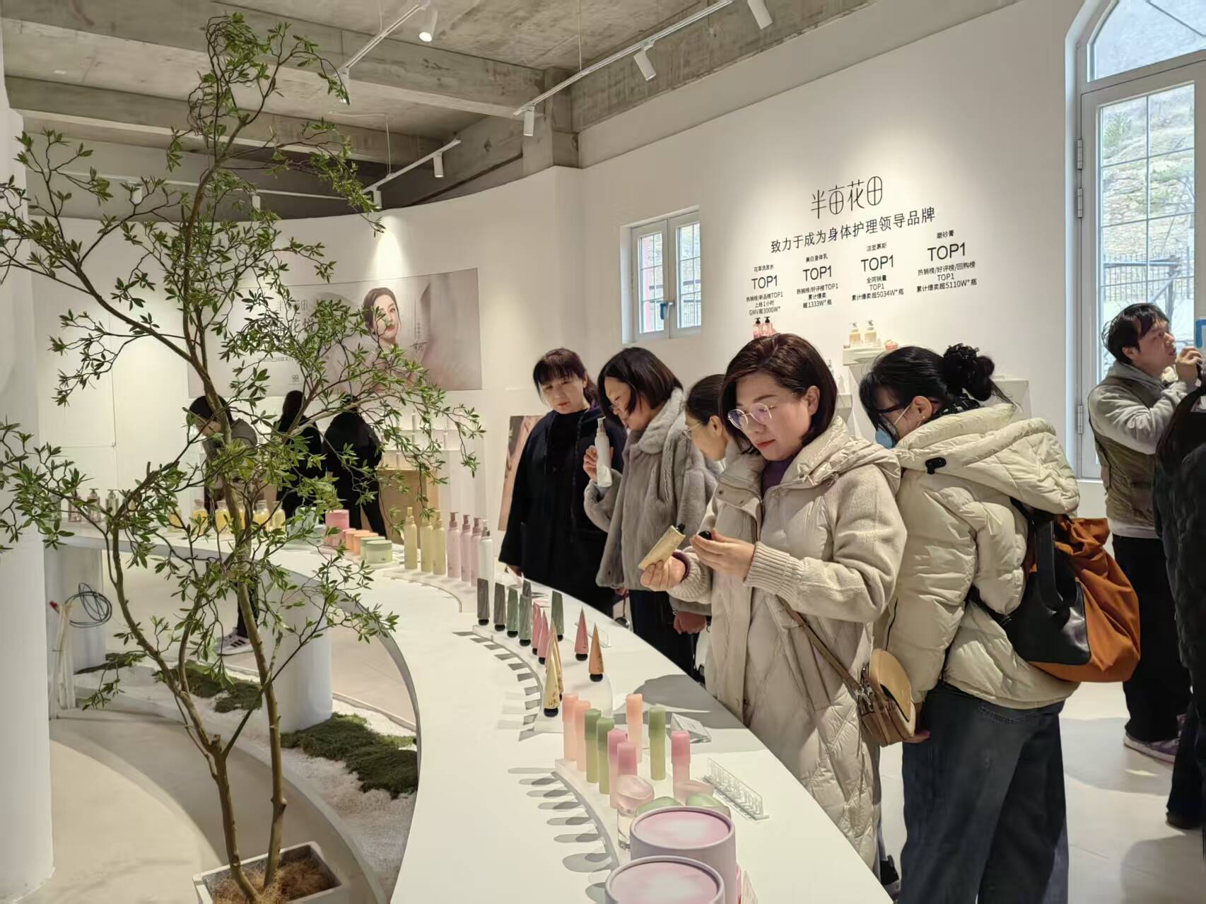 早春的高庄,寒意未消,半亩花田基地内却已春意盎然。在基地负责人带领下,大家沿着观光步道缓步前行,详细了解基地从传统农业向农旅融合转型的创业历程,聆听半亩花田化妆品萃取、制作过程,实地体验半亩花田各类化妆品。大家漫步花田小道,在春日美景中放松身心、交流心得,女职工们三三两两,或蹲身观察花卉长势,或与腊梅合影留住美丽的自己,或举起手机记录乡村新貌,在春日花海中感受乡村振兴与生态建设成果,凝聚奋进前行力量。