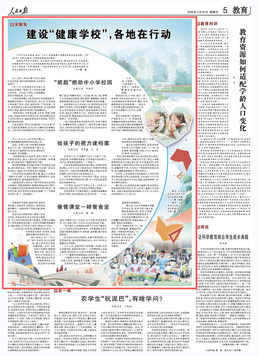 今天,人民日报以《建设“健康学校”,各地在行动》为题,对我省深入践行“健康第一”教育理念,在儿童青少年近视综合防控方面的工作做法进行报道。具体内容一起来看——