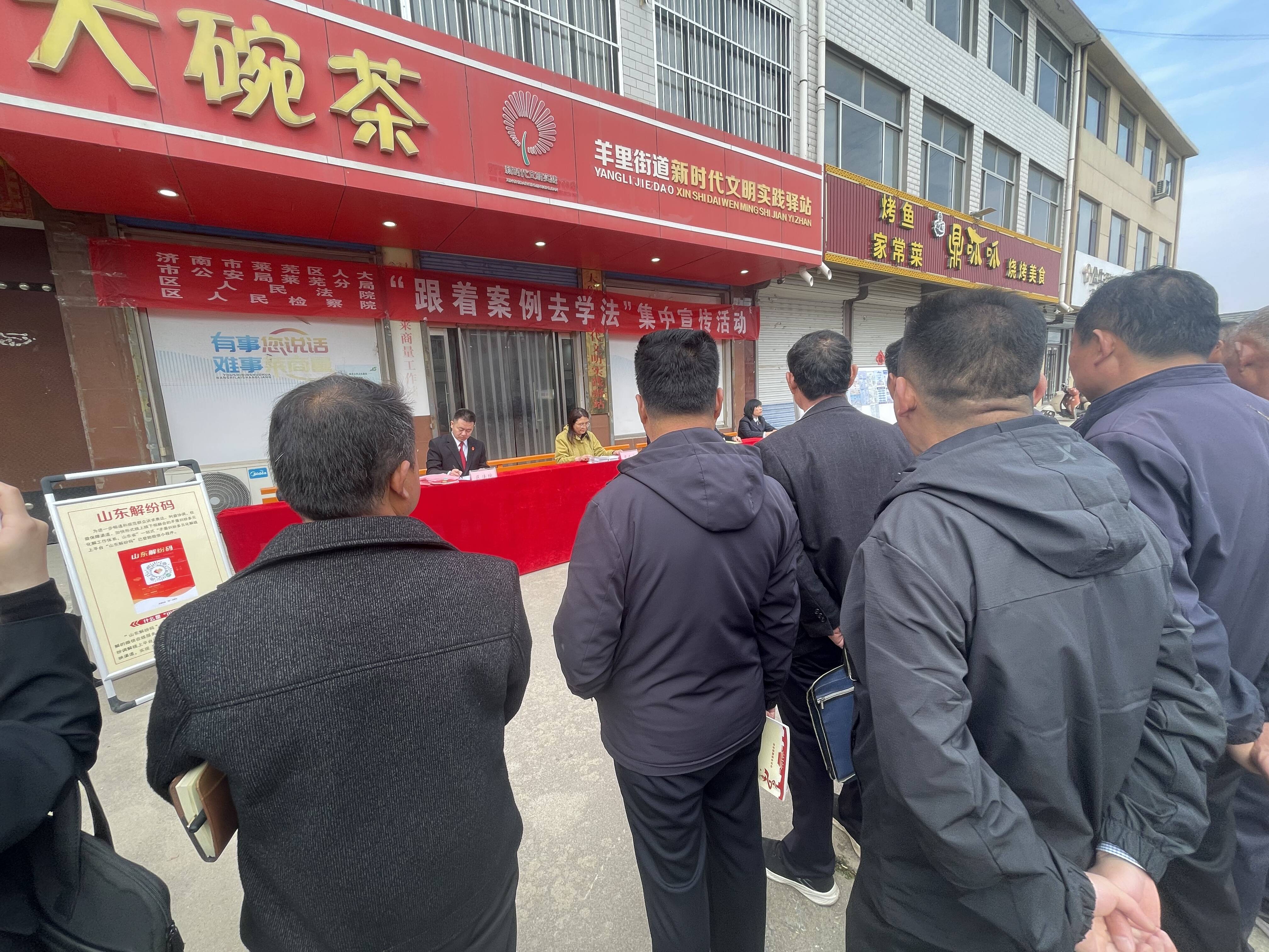 莱芜融媒3月23日讯 为进一步提升辖区群众法治意识和法治素养,切实将法律服务送到群众身边,近日,济南市莱芜区人民法院、莱芜区人民检察院、莱芜区司法局羊里司法所联合羊里街道综治办、新时代文明实践所,在羊里街道新时代文明实践驿站开展“跟着案例去学法”集中普法宣传活动。